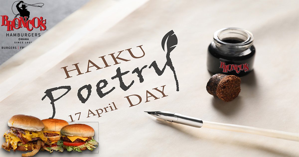 Today we’re challenging you to write your best Haiku – Bronco’s 100% all beef burgers and French fry themes are best.
