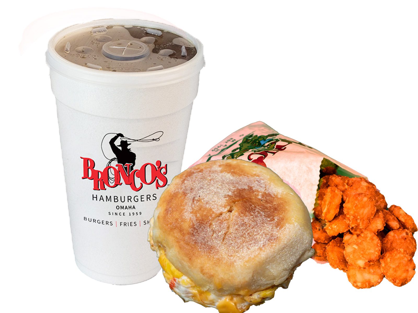 It was Henry’s creation and his favorite. We know you’ll love it also: TWO 100% Nebraska all beef patties surrounding a grilled Bronco’s frankfurter; melted, cured Kraft American cheddar cheese; Lettuce, tomato and of course, our special Bronco’s Sauce served on a fresh toasted bun.